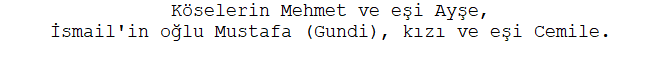 Köselerin İsmail'in oğlu Mustafa (Gundi), eşi Cemile, kızı ve damatı.