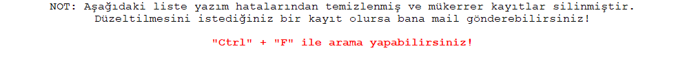 İl Adı (Sıralı) - Yerleşim Yeri Adı
